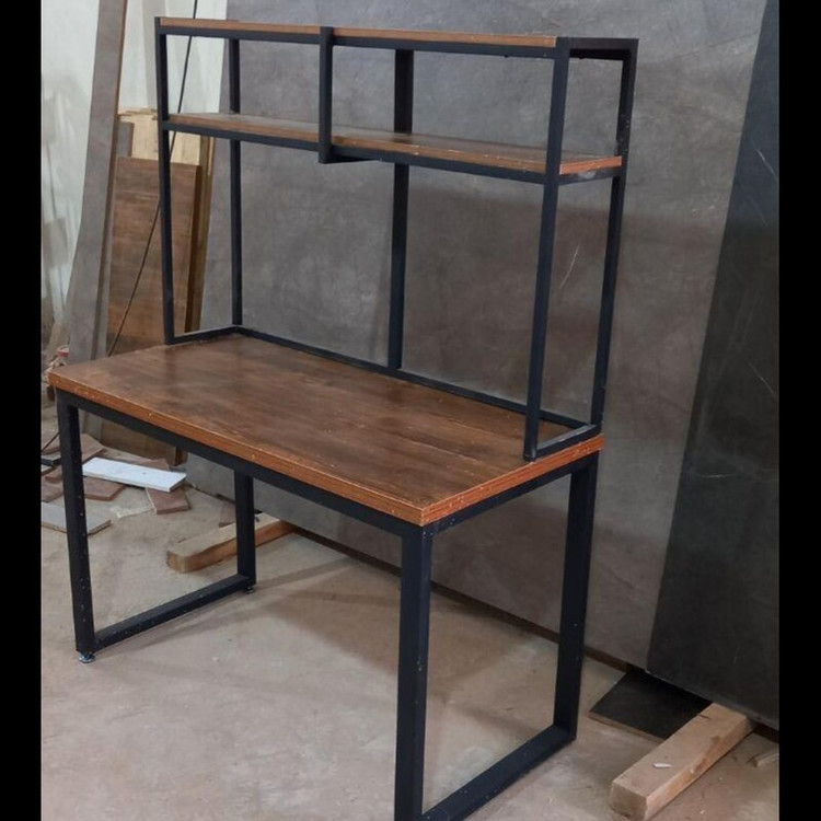 میز مطالعه فلزی ارتفاع ۸۰ طول ۱۲۰ عمق۶۰ ارتفاع شلف ۱۶۰ پروفیل ۵۰ در ۳۰ رنگ کوره ای صفحات ام دی اف شرکتی درجه یک