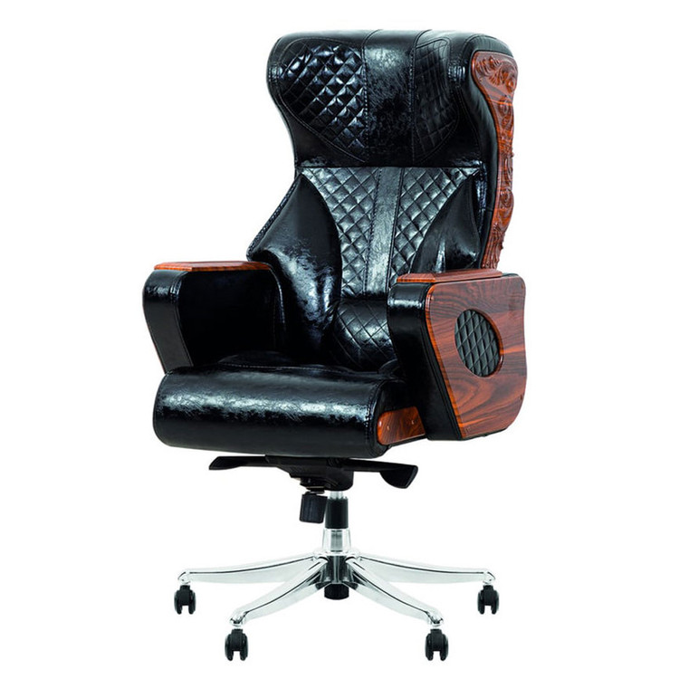با ابهت و با کلاس همین چند کلمه برای توصیف صندلی مجلل مگاسیس 4 کافیست تلفیق هنرمندانه چوب و چرم در این محصول زیبا، امکان منطبق شدن صندلی با دکوراسیون های کلاسیک و نئوکلاسیک را مهیا کرده است و جلوه خاصی به این محیط ها خواهد داد مکانیزم ویژه (اتوبوسی) بکار رفته کارایی و راحتی را در کنار زیبایی برای این صندلی تضمین می کند این نوع مکانیزم به لحاظ حرکتی نرم ترین و مقاومت ترین نوع خود می باشد و امکان تنظیم زاویه دلخواه تکیه گاه و تنظیم دستی نرمی و سفتی پشتی را به استفاده کننده می دهد پایه های فولادی به همراه چرخ های ژله ای ابعاد بزرگ و وزن نسبتا زیاد صندلی را به راحتی تحمل می کند و حرکت روان را برای جابجایی در محیط کار مهیا می کند گروه مبلمان هنر صنعت اوان این محصول پرطرفدار را با بسته بندی صادراتی با مشخصات فقط در دو رنگ مشکی و قهوه ای تولید و عرضه می کند.