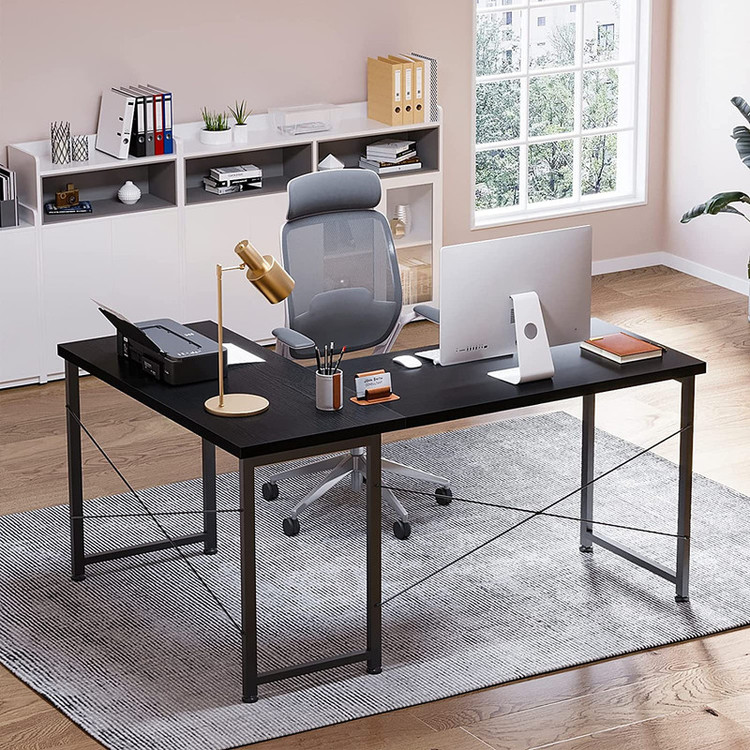میز جادار که با پایه فلزی شیک قرار گرفته است، به شکل L، محیط کاری راحت را فراهم می کند که بهره وری را افزایش می دهد.