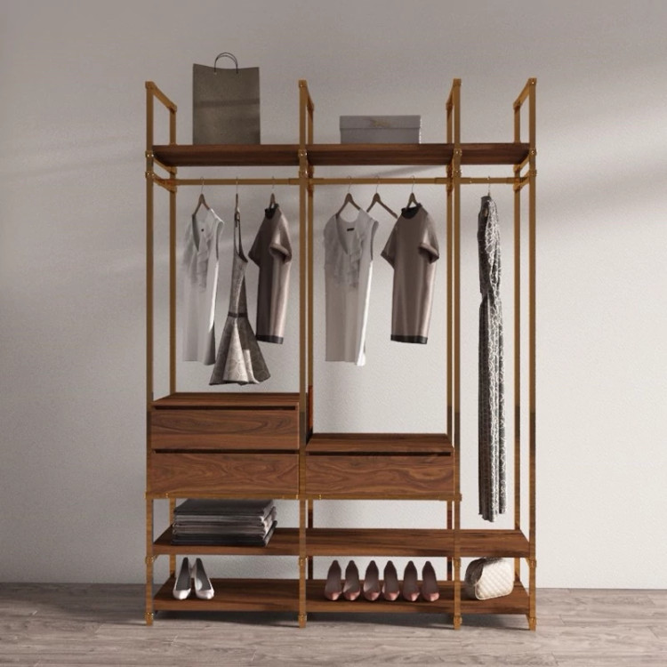 کمد و رگال لباس در چیدمان منزل و اتاق خواب نقش مهمی را ایفا می کند،بنابراین انتخاب یک رگال لباس شیک و زیبا می تواند تغییر چشمگیری در دکوراسیون منزلتان ایجاد کند. رگال لباس طلایی مدل 021 محصولی جدید است که دارای طراحی خاصی می باشد و می تواند یک گزینه مناسب برای منزل شما باشد.جنس این کار از ام دی اف مرغوب و پروفیل استیل طلایی نگیر و عرض آن 160 سانتی متر و در ارتفاع 240 سانتی متر می باشد.