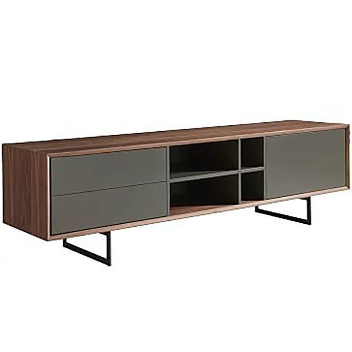 میز تلویزیون مدل e04b با طراحی شیک و منحصر به فرد خود زیبایی را به خانههای گرمتان هدیه میکند. شکل ساده و مستطیل این میز، علاوه بر اینکه با تلویزیونهای تخت هماهنگ است، باعث میشود تا با هر نوع دکوراسیون هارمونی مناسبی داشته باشد. ابعاد میز تلویزیون به اندازه 180 در 35سانتیمتر میباشد. بهعلاوه، ارتفاع 53 سانتیمتری آنکه هماهنگ باحالت نشسته است، لذت تماشای تلویزیون را به شما داده و باعث میشود که در حین تماشای برنامه دلخواه خود، نیازی به تغییر جا و یا ارتفاعتان نداشته باشید.این میز مجهز به دو کشو کاربردی بوده و یک عدد درب که جای لازم برای وسایل دلخواه کاربران را فراهم کرده است. همچنین برای استقرار دیگر لوازم صوتی و تصویری، مانند سینمای خانگی، کنسولهای بازی، انواع گیرندهها و پخشکنندهها، دو طبقهی مجزا در قسمت سمت وسط میز در نظر گرفته شده است.این میز تلویزیون به شکل مونتاژ شده در بسته بندی ارسال خواهد شد و شما نیازی به هیچگونه نصب لوازم و قطعات آن ندارید.جنس این محصول ام دی اف مرغوب می باشد