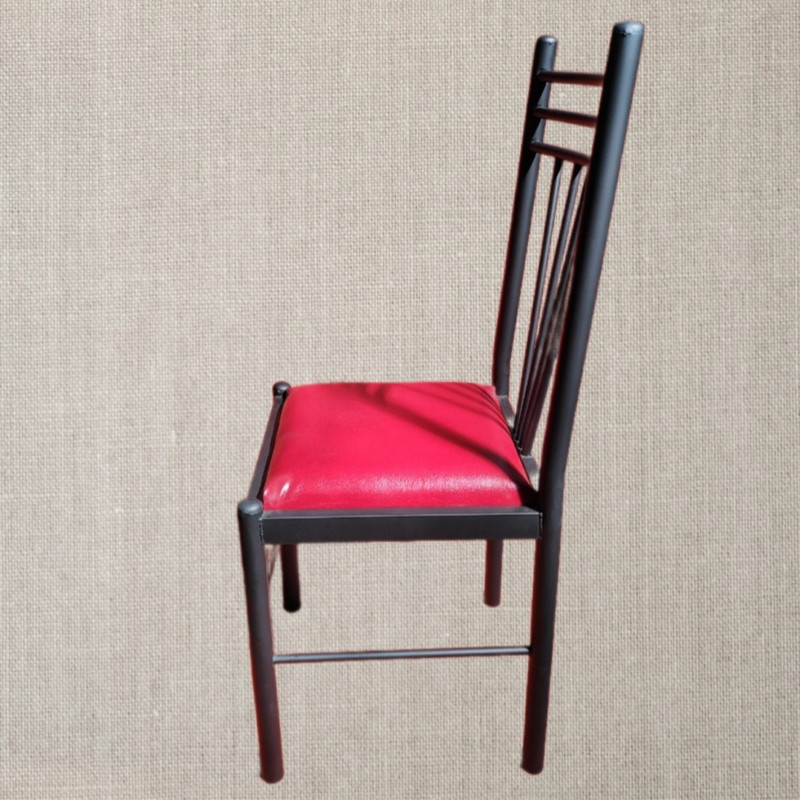 صندلی مناسب برای میز ناهارخوری و نشیمن راحتی ابعاد نشیمن 35 در 35 سانتیمتر میباشد. جنس کفی از چرم و رنگ آن زرشکی است. جنس پایه آهن ورق ضخیم میباشد و استحکام بالایی دارد. رنگ پایه از نوع کوره ای الکترواستاتیک میباشد.