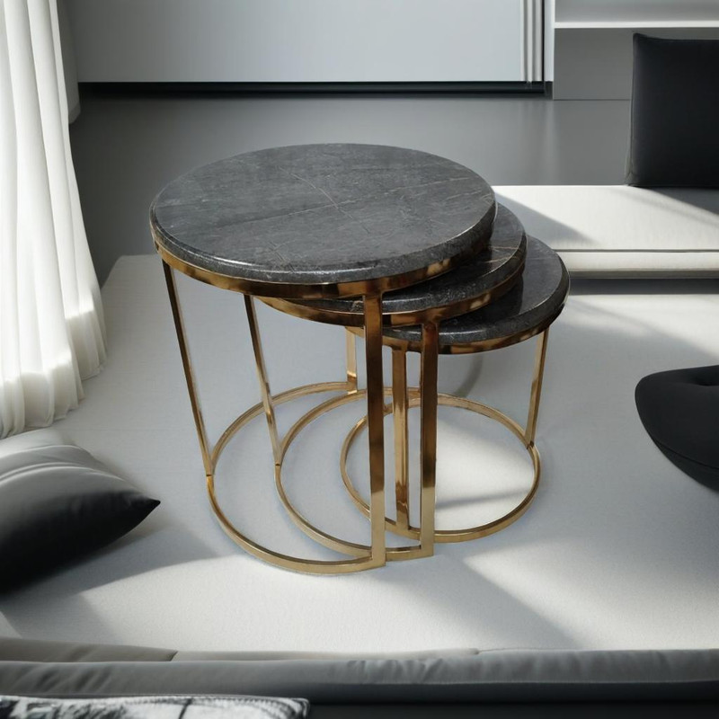 میز جلومبلی سه عددی که به راحتی در زیر یکدیگر قرار میگیرند و فضای کمی اشغال میکنند.