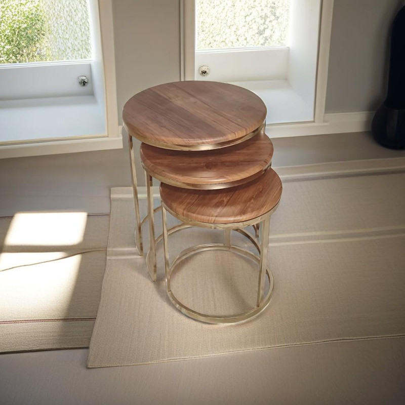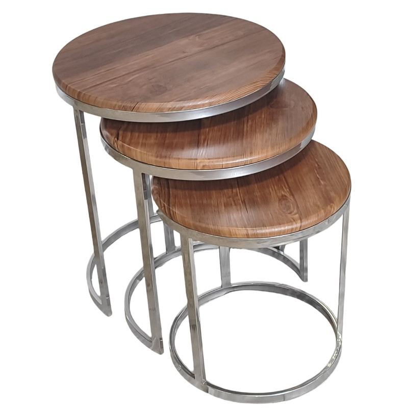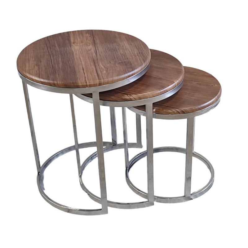 میز جلومبلی سه عددی که به راحتی در زیر یکدیگر قرار میگیرند و فضای کمی اشغال میکنند.