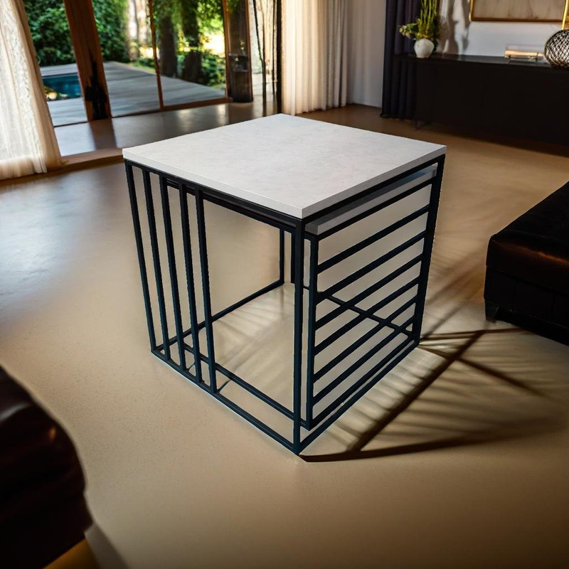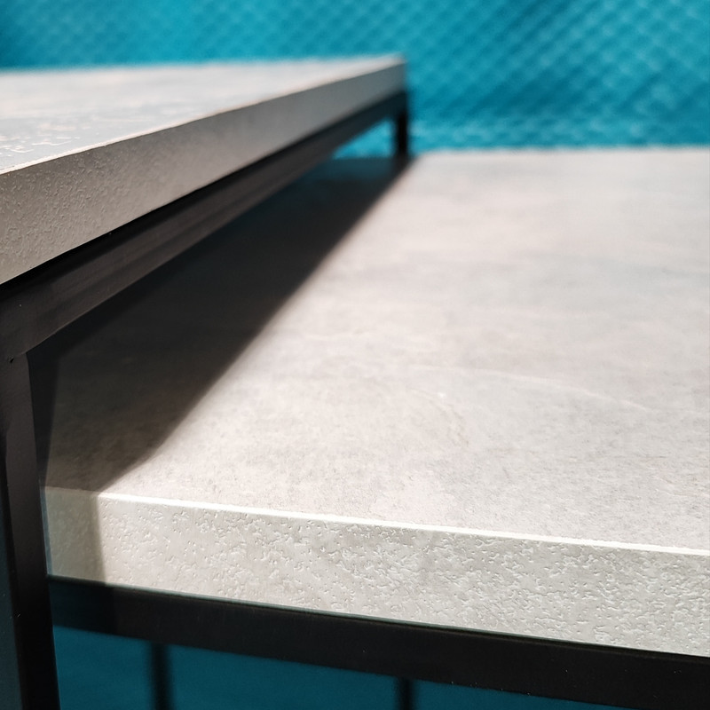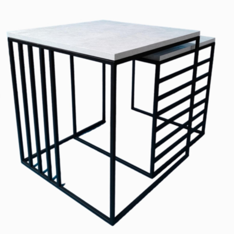 مجموعه دو عددی میز جلومبلی. این مجموعه با طراحی مینیمال و منحصر به خود مناسب خانه های مدرن میباشد. جنس پایه فلز و جنس صفحه ملامینه طرح بتن و برجسته میباشد. میز کوچک به راحتی داخل میز بزرگتر قرار میگیرد و فضای کمی اشغال میکنند. در ساخت این میز از پروفیل 1 در 1 استفاده شده و وزن کم این میز امکان جایجایی راحت آن را فراهم میکند.