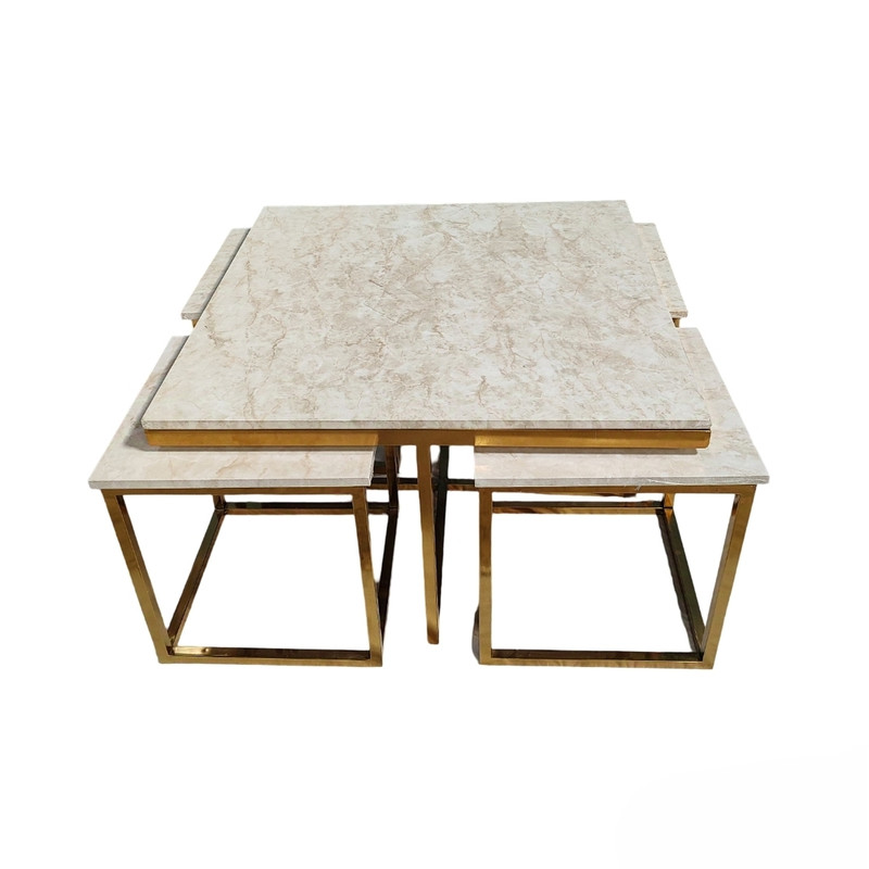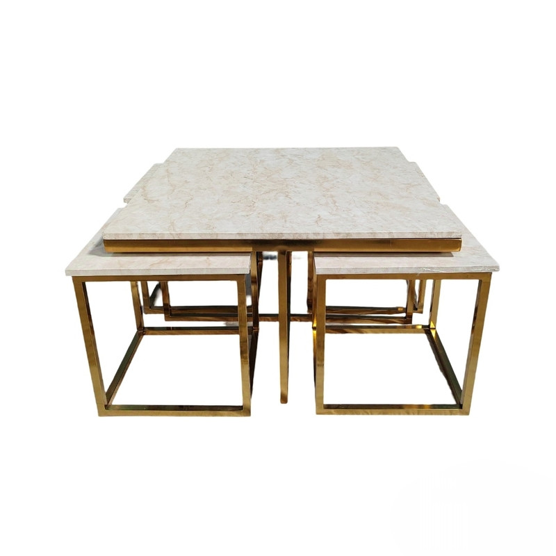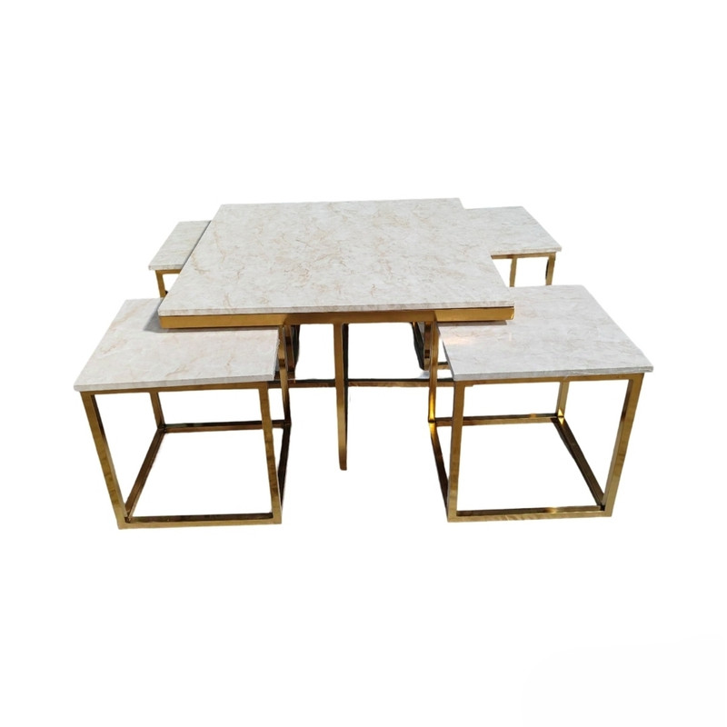 مجموعه پنج عددی میز جلومبلی که مناسب پذیرایی میباشد. این مجموعه شامل یک میز بزرگ مربع به طول ۸۰ در ۸۰ سانت و چهار عدد عسلی به ابعاد ۴۰ در ۴۰ سانت میباشد.